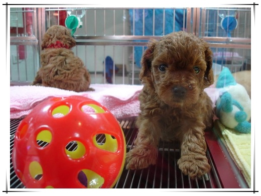 在一家賣狗狗的店看到的小小紅貴賓,真是可愛到極點,好像假的狗狗喔!